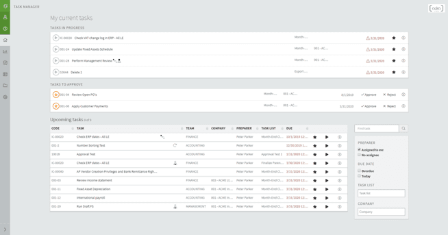 - Financial close task management with workflow tracking