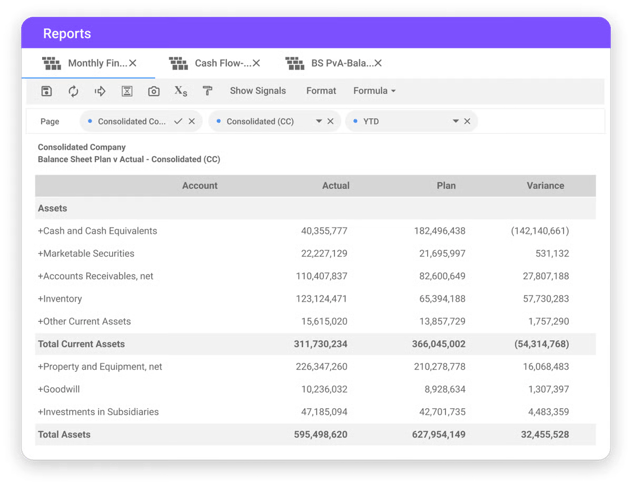 - Automated data consolidation connects data from numerous sources for automated roll-ups and drill-downs.