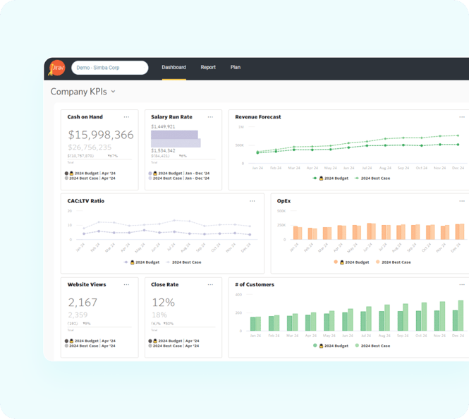 KPI dashboards help you access, filter, and visualize data quickly. You can understand how your business is doing compared to the benchmarks set during budgeting and forecasting.